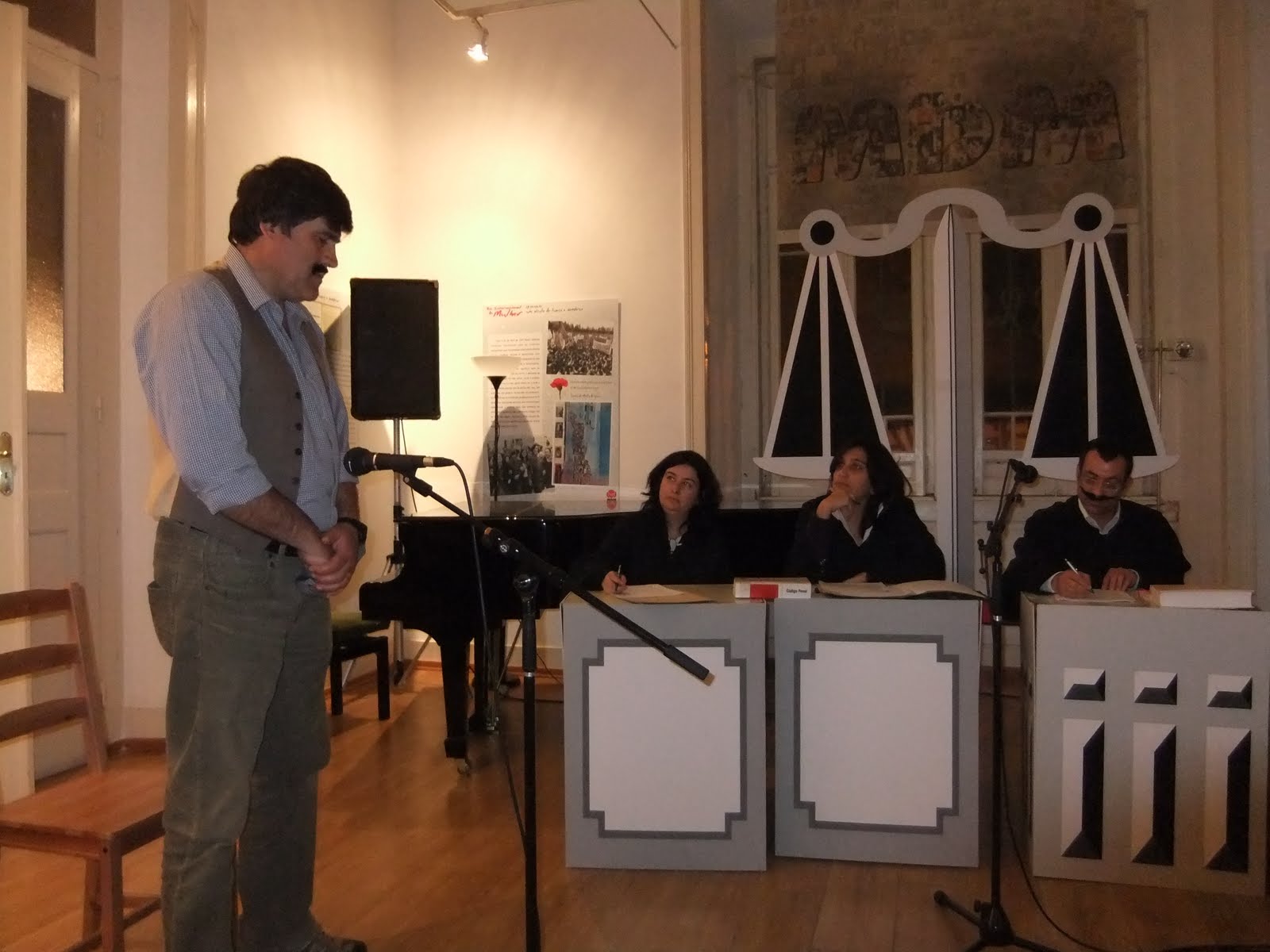 Desde o dia 6 de Março, um grupo de funcionários da Câmara, membros da Associação Cultural e Social dos Trabalhadores da CMM está a levar a todas as localidades do nosso concelho a peça de teatro "O Julgamento". É uma peça com um tom cómico, apesar de se passar numa sala de tribunal, que pretende alertar para o grave problema da violência doméstica.